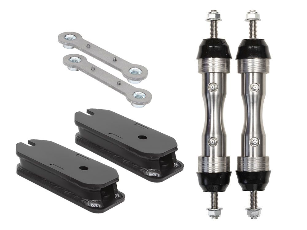 Optional Upgrades - While not required, Carli Suspension offers additional components to further enhance ride quality and / or performance of this leveling system. These can be found by scrolling down the page to the table below. Required Sway Bar Selection - While Carli does not include a front sway bar correction in this kit it is required to install this lift kit properly. The drop bracket kit works great as a more economical solution. However, for truck owners wanting a HUGE improvement in ride quality the Carli Torsion Sway Bar is your solution and is an amazing upgrade. Designed to allow the front suspension to move more freely without giving up control. |